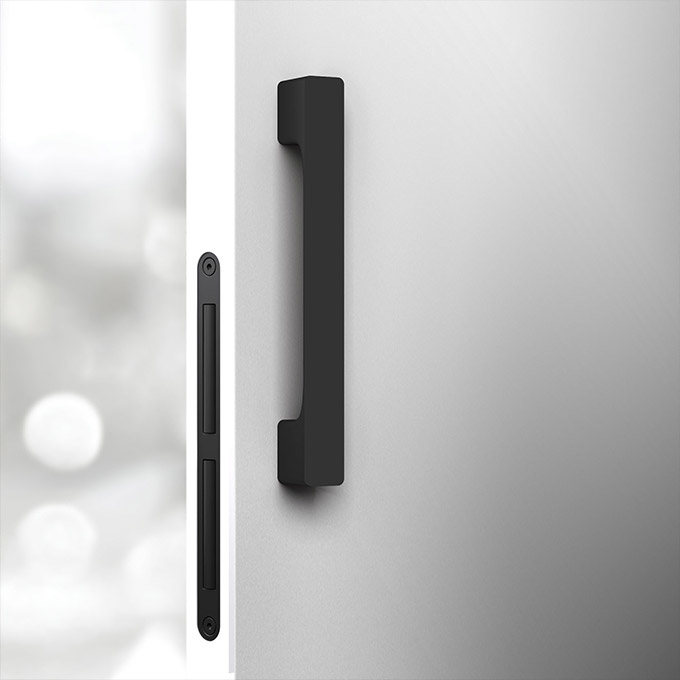 K magnetickému systému jsme navrhli inovativní úchopná madla, připravená pro jednoduché, ale účinné ovládání dveří. Součástí některých modelů je i integrované zamykání WC/koupelna, což přináší dosud nepoznaný dojem.